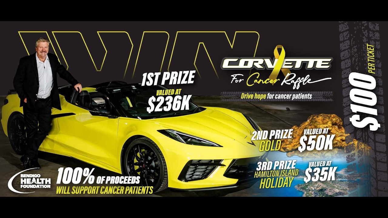 1st Prize: A Corvette worth $236k2nd Prize: Gold Nugget worth $50k3rd Prize: Hamilton Island Holiday worth $35kOver $300,000 in prizes.Just 15,000 tickets.